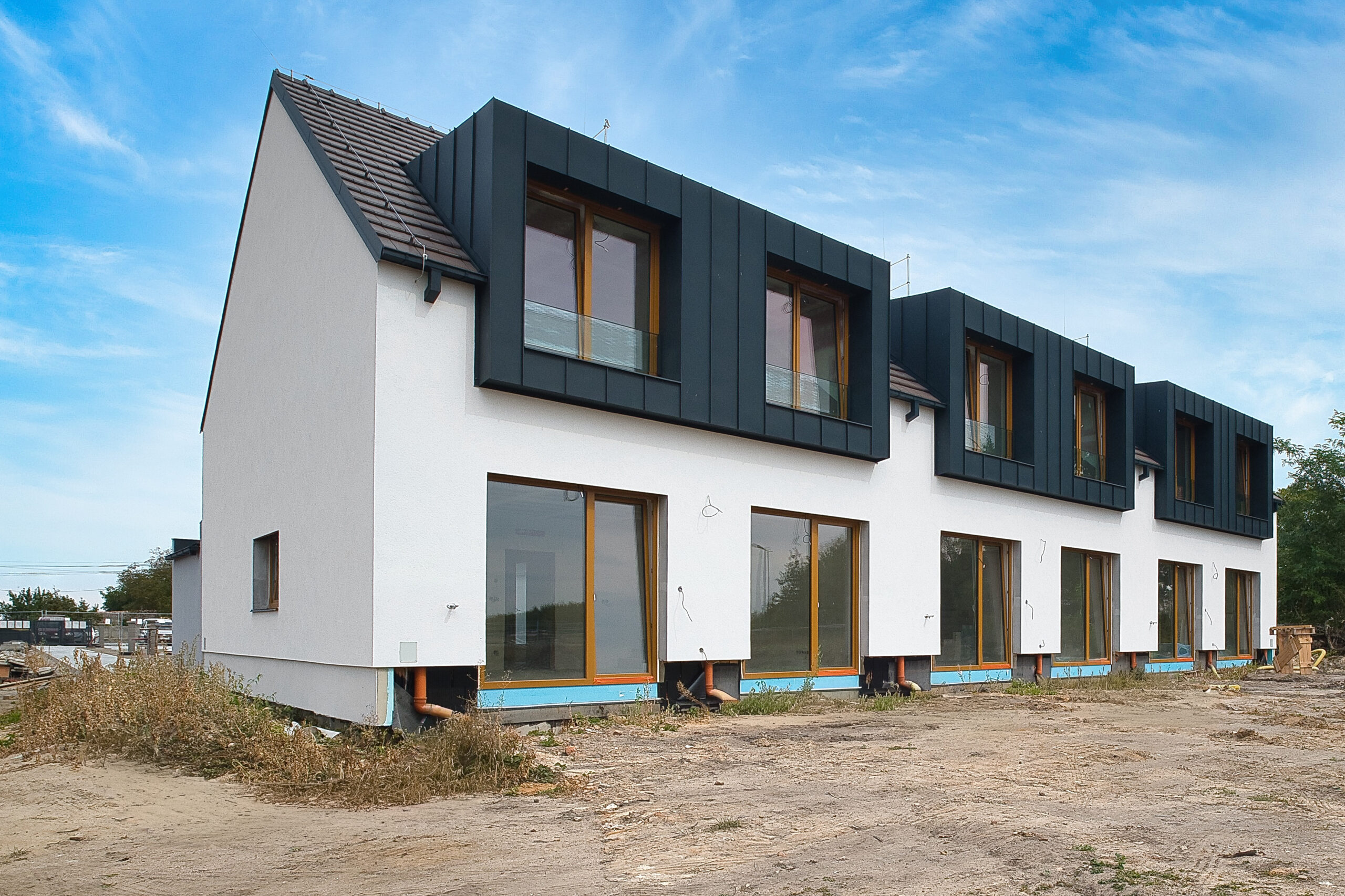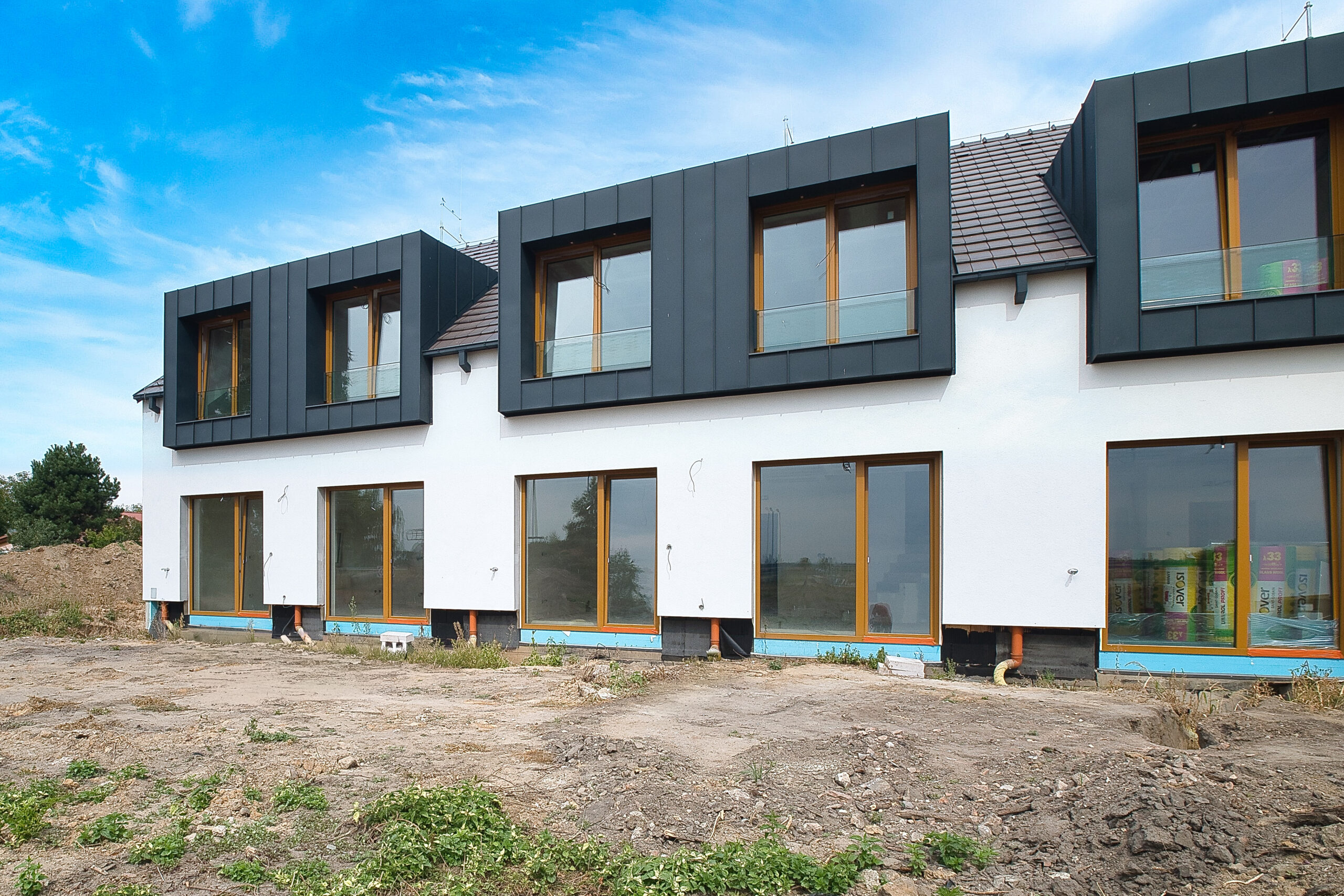 Domy jsme navrhli tak, aby splňovaly i budoucí normy a potřeby větších rodin. Disponují plastovými okny (trojsklo) — venkovní rámy jsou potažené hliníkovým plechem, což navíc lahodí oku jak majitele, tak souseda.